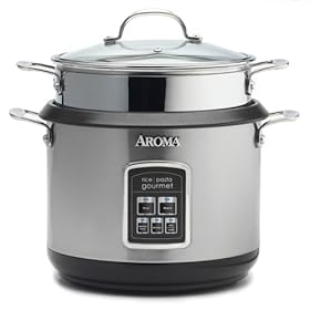 This review is from: Aroma ARC-560 Rice Pasta Gourmet Rice & Pasta CookerI have had this rice and pasta cooker for several weeks, and I get a lot of use out of it. I love that I can cook rice and steam vegetables at the same time with it. The non-stick surface actually works! I have had no need at all to scrub or scrape at it. Even when I've forgotten half a pot of rice on the counter overnight, the dried up rice just falls right out of the pot. It also works better than my stovetop for making pasta -- I use wheatless pastas made of rice or corn, and they can be a little tricky to cook. It's rather expensive, but so far I have really enjoyed having it. I had a cheaper rice cooker before, and it was ok, but this really is a lot better....This review is from: Aroma ARC-560 Rice Pasta Gourmet Rice & Pasta CookerI purchased the Aroma ARC-560 Rice Pasta Gourmet Rice & Pasta Cooker and am very happy with it. I've cooked both rice dishes and pasta dishes in it and they came out delicious. I'm kind of a lazy cook, so I've been using the all in one pot recipes I found on the Aroma web site so far. The recipes are easy but yet very tasty. I highly recommend this rice & pasta cooker....This review is from: Aroma ARC-560 Rice Pasta Gourmet Rice & Pasta CookerI love my Aroma ARC-560 pasta and rice cooker. I've had mine for over a year now, and it always makes perfect rice. The product description adequately describes the contents, so I won't go into that.I bought the cooker because it makes brown rice, however I have not made brown rice in it yet. I fell in love with jasmine rice right after I bought the cooker. The keep warm feature works great...I don't have to be so accurate in my finishing times. The sides of the rice pot are marked, so it's super easy to set it up.As with many rice cookers, you can use this one as a steamer. It comes with a steamer basket that you can place over the rice to cook both at the same time. You can also use the pasta colander as a steamer basket, so you can steam two levels of food at the same time.I also bought it for the pasta cooker feature. As a pasta cooker it has plenty of volume for family dinner, and frees up a stove top burner for other things.Clean up is easy. The rice pot and pasta colander are large, but they fit in the dishwasher OK. They are easy to clean by hand, too.I'm online today buying another one...as a wedding gift for a friend!...