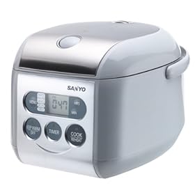 This review is from: Sanyo ECJ-B35S Micro-Computerized Rice Cooker and WarmerOVERALL, in balancing its features and price, this small capacity rice cooker is an excellent value. It has a number of excellent features, few of which are mentioned in the brief editorial review. They really should have been, to do this appliance justice:* fuzzy logic microprocessor control produces EXCELLENT rice: Without reservation I can say that this rice cooker makes the best rice I've ever cooked. Grains are fluffy and don't stick to one another. There's no goo on the bottom, no browning of the rice, and absolutely no burning.* THICK cookpot (5 mm) makes for even cooking* titanium non-stick finish makes for easy clean up* retractable cord of reasonable length* multiple settings (white rice/mixed, brown, porridge)* clock with timer for autocook at later time. The default cook time (the one last entered) remains the same until changed, making it easy to set up the next time.* easy to set digital clock and timer* no need to unplug/plug to start* 'countdown' feature tells you when the rice is almost done, beginning at 13 minutes.Thus far I've successfully cooked white, brown, basmati, and wild rice in this appliance. FYI, the porridge setting can also be used to make risotto.The only 'down' sides to this appliance are minor:1. The front to back measurement is longer than side to side, making it most easily placed towards the back of the counter. However, the steam vent is placed at the rear. Unfortunately, if you have cabinets above, this combination of features will result in steam condensing on the bottom of the cabinet--which will NOT result in a good outcome for your cabinets in the long run! This can be dealt with entering the settings you want, then bringing the cooker forward, letting out the cord a bit, and turning the appliance 90 degrees. 2. The manual notes that placement should not be where the appliance will be in the sun, since the appearance of the plastic may change over time. (I think the sun could also heat the rice cooker--something that mainly affects you if you set the timer to start later, or keep rice warm for an extended period.) I mention this because it doesn't appear on the box, and did require that I find another place to put this, where it would always be out of the sun, rather than where I had originally planned.3. The manual is not the greatest. The cooker is shipped with the inner lid in place. However, there is no mention of how to remove the inner lid; FYI, it's a press-fit, meaning that it should be pulled off gently, using both hands and gentle pressure. After use, the lid needs to be washed, of course. The lid is then replaced in the same way. The instructions for using the pot to prewash the rice are a bit confusing, and there are LOTS of marks in the pot's interior.4. Its capacity is small. If you are cooking for yourself, for a couple or for a small family/group, for one meal a day, it will meet your needs nicely. If you eat rice twice a day, and don't mind resetting to cook it for the second meal, this will still meet your needs. Otherwise, consider a fuzzy logic rice cooker with larger capacity.Bon appetit!...This review is from: Sanyo ECJ-B35S Micro-Computerized Rice Cooker and WarmerThis is my first rice cooker and I love it! It makes great rice every time. I have made white, brown and jasmine rice so far, they all came out fantastic. I eat rice every day now and I feel great!Pros- Small size, good for one person or a small family.- Changes to keep warm mode after rice is done so it doesn't burn or get cold.- Retractable cord- Three cooking modes- Countdown timer starts at 13 minutes- Delayed start timer- Very durable - Easy to clean (except one part, see below)- Great price!Cons- The unit has an inner lid with a small valve that may be difficult to clean if you don't have a dish washer....This review is from: Sanyo ECJ-B35S Micro-Computerized Rice Cooker and WarmerThis is a great rice cooker for the kitchen-style-conscious small household that likes to cook east-Asian style rice. If you're not too familiar with how the sensibilities of Asian rice cooking vary from Western rice cooking, this feature set on this product will probably seem a little strange to you, and you'd probably prefer a steamer/rice cooker combo model from an American manufacturer.I traded up to this model after many years of using a rice cooker with an alumnimum pot. I really appreciate the easy-to-clean titanium-coated steel pot on this cooker, and I expect it to last a lot longer. The inside-the-lid pot cover is still made of aluminum, however, and strikes me as rather flimsy compared to the rest of the product, which feels very solid. I'm a little concerned about whether I might dent it accidentally while cleaning.I have experienced none of the problems that some others noted regarding burnt rice. It seems to shut off at just the right time, and I have found the "keep warm" feature works just as it is supposed to work and the rice remains soft for hours....