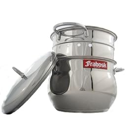 This review is from: Frabosk Risottiera, 18/10 stainless steel w. triple sandwich bottomI have used the Frabosk rice cooker for better than one year and I am thrilled with it. I researched long and hard before this purchase believing I would get an electric cooker while hoping that one existed with a stainless steel dish versus the typical alluminum type; I never did find one. This Frabosk cooker solved both the electricity usage, the stainless steel bowl search, the easy clean-up and best of all great tasting rice each and every time. This cooker brings out the flavor of rice unlike anything I ever knew was its potential. It is actually a rice STEAMER which can also be used for fish, vegetables and reheating leftovers. The ONLY downside is that it takes longer for the rice to cook and unlike the traditional rice cookers, one cannot keep the rice warm. One does need to add water both to the cooking pot and a bit to the rice as needed. I add olive oil, garlic and parsely to the rice as I set it up to cook and the results are wonderful....