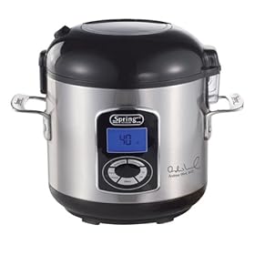 This review is from: Dr. Weil 9812 The Healthy Kitchen 5-Cup Multi-Use Rice CookerI had bought the Dr. Weil Stainless Steel rice cooker thinking it was all stainless steel including the cooking pot. I specifically did not want a teflon or non-stick cooking pot and that is exactly what this product has. I am really surpised that Dr. Weil would sell a product with a non-stick surface as this surface is known as a carcinogin and he is known as a health minded professional. I have returned this rice cooker and bought the Miracle stainless steel rice cooker with stainless steel cooking pot....This review is from: Dr. Weil 9812 The Healthy Kitchen 5-Cup Multi-Use Rice CookerThe basket that hold the rice is a fairly heavy aluminum, that has been hard anodized. While the coating looks like teflon... and due to how it makes rice, rice does not stick, it is dark grey aluminum oxide (think ruby or Sapphire). While the container is still aluminum, the coating is many times harder than any stainless would be.Not sure why, other than the color, lots of people think this has a teflon rice container.As far as cooking goes, have not used a better rice cooker, nor one easier to clean up afterwards. Nice product....This review is from: Dr. Weil 9812 The Healthy Kitchen 5-Cup Multi-Use Rice CookerIt works well initially, but then it starts boiling over and leave a huge mess, regardless of how little water we put in. It's hard to clean as well....